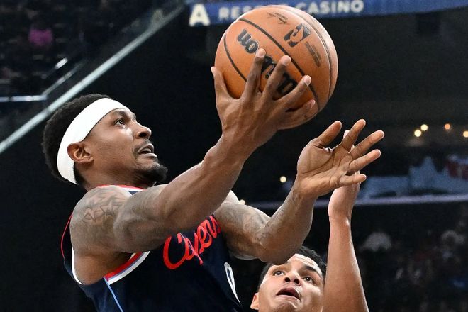 本场比赛中,快船虽然输掉了比赛,但是球队的先发得分后卫布拉德利-比尔(Bradley Beal)的表现还是有些一般的。比尔全场出场20分09秒,投篮8中5,三分线外4中2,罚球2中0,得到了12分1篮板2助攻1抢断的数据,还有3次失误和3次犯规,正负值为-2。比尔在进攻端保持了相当不错的进攻效率,他的得分能力也还是发挥了出来。在出场时间碎片化,战术地位有限且出手次数不多的情况下,比尔还是得到了不少的分数。不仅如此,比尔在防守端的表现也是值得肯定的,他也是有着很高的防守积极性。我们也看得出来,比尔非常努力,也很希望为球队提供更多的支持,也愿意在防守端付出更多的体力,然而在目前这种环境中,在这样的战术安排之下,他确实是很难发挥出自己的特点。