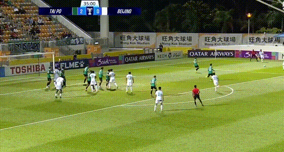 第36分钟,张稀哲右边路大脚开到禁区,柏杨甩头攻门顶进,北京国安扳回1球。